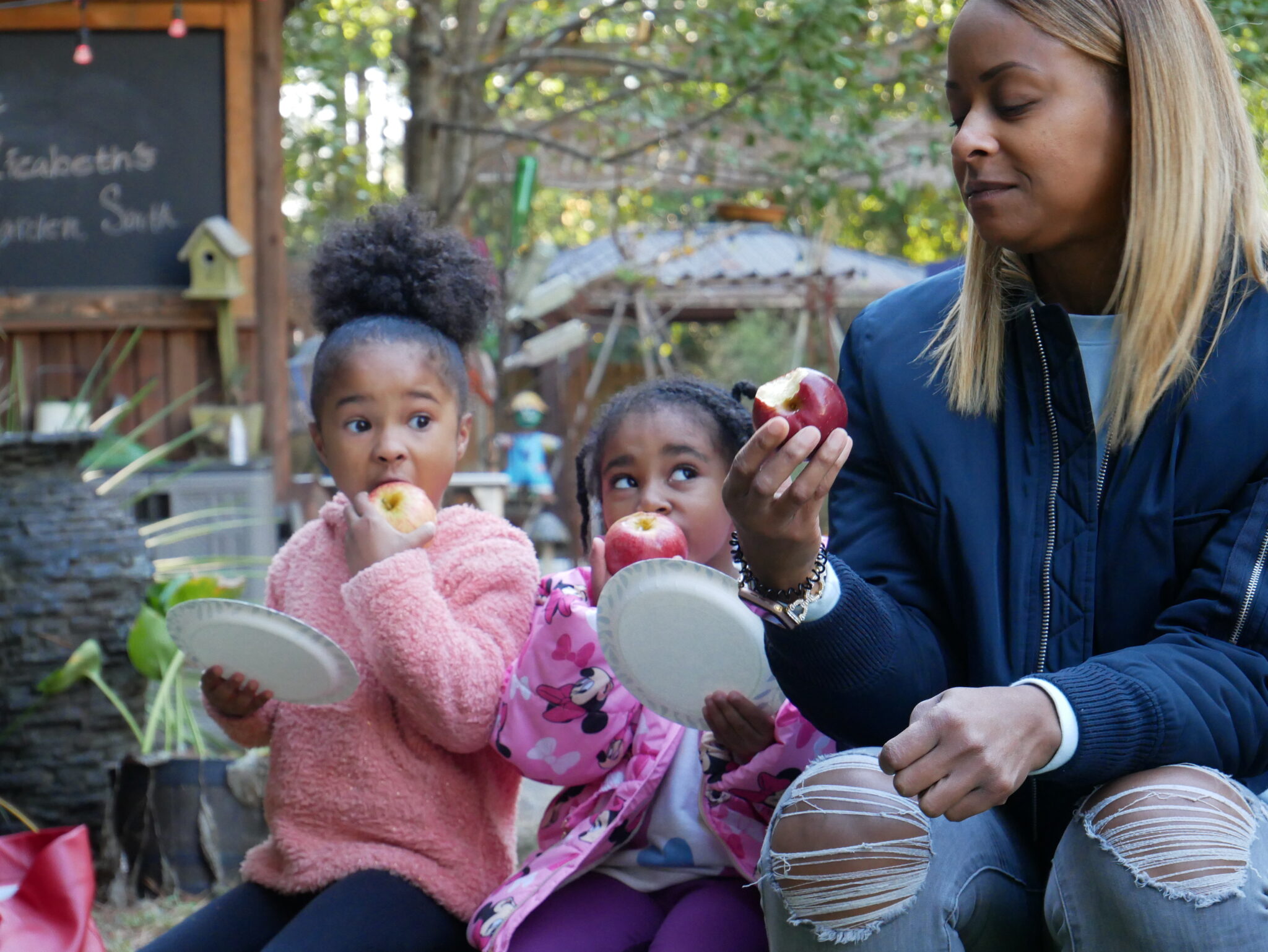 On EdNC’s recent visit to Shaw’s program, children and staff gathered outside under a gazebo and counted down to 10:00 a.m. to bite into local produce and celebrate NC Crunch Day, an annual celebration of healthy foods in child care centers and K-12 schools.